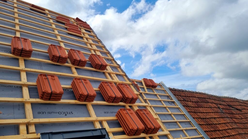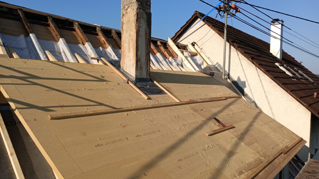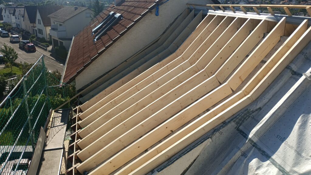 Bei einer Dachsanierung prüfen wir gründlich die tragenden Konstruktionen, achten auf eine fachgerechte und fehlerfreie Dämmung und arbeiten nach dem Gebäude Energie Gesetz (GEG).
